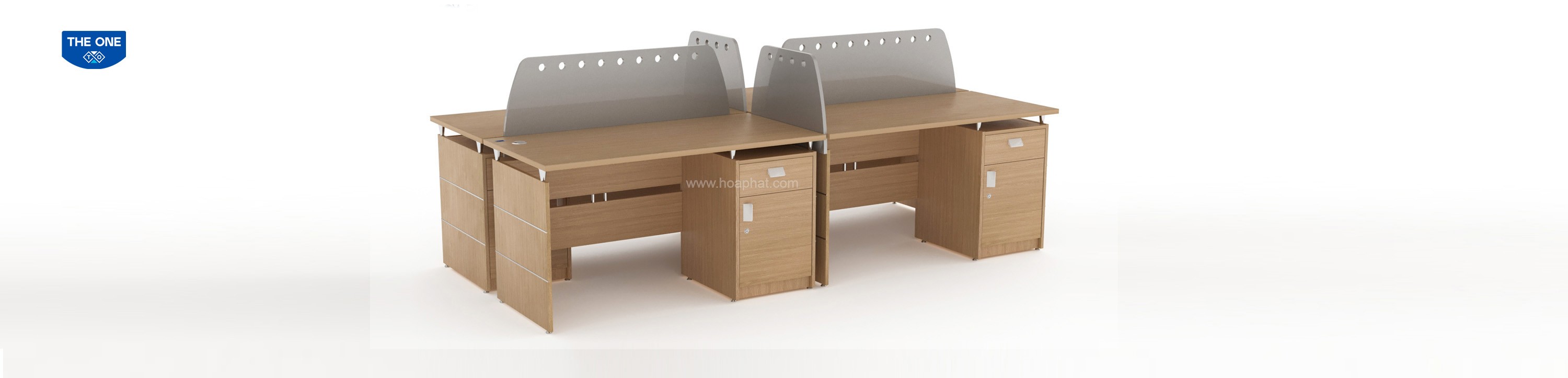Module làm việc 4 chỗ mặt chữ nhật có hộc liền đi kèm.