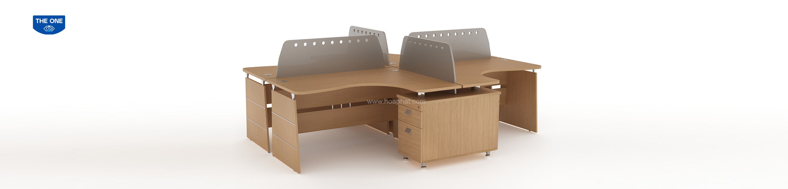 Mặt bàn lượn có hộc liền đi kèm và có vách ngăn.