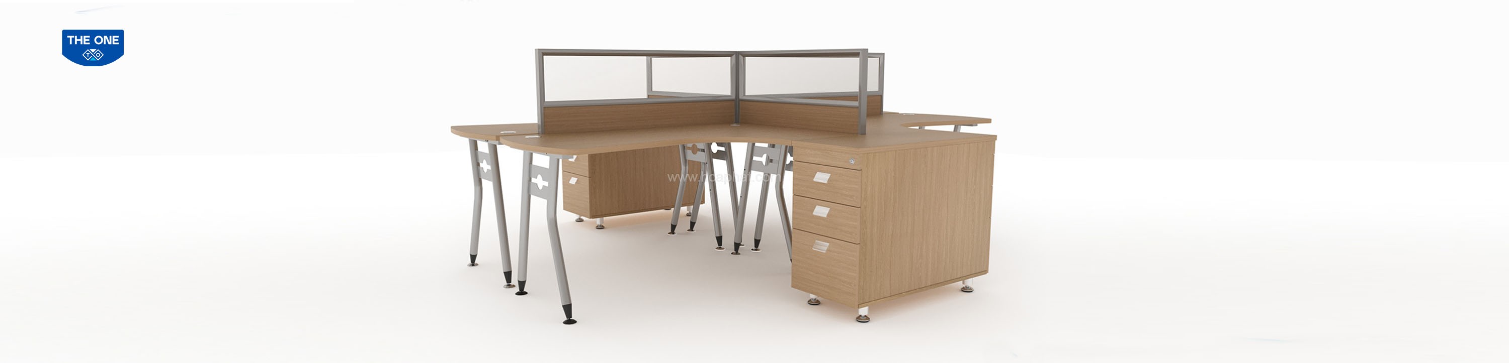 Module làm việc 4 chỗ, mặt bàn lượn gỗ melamine sử dụng chân sắt C2.