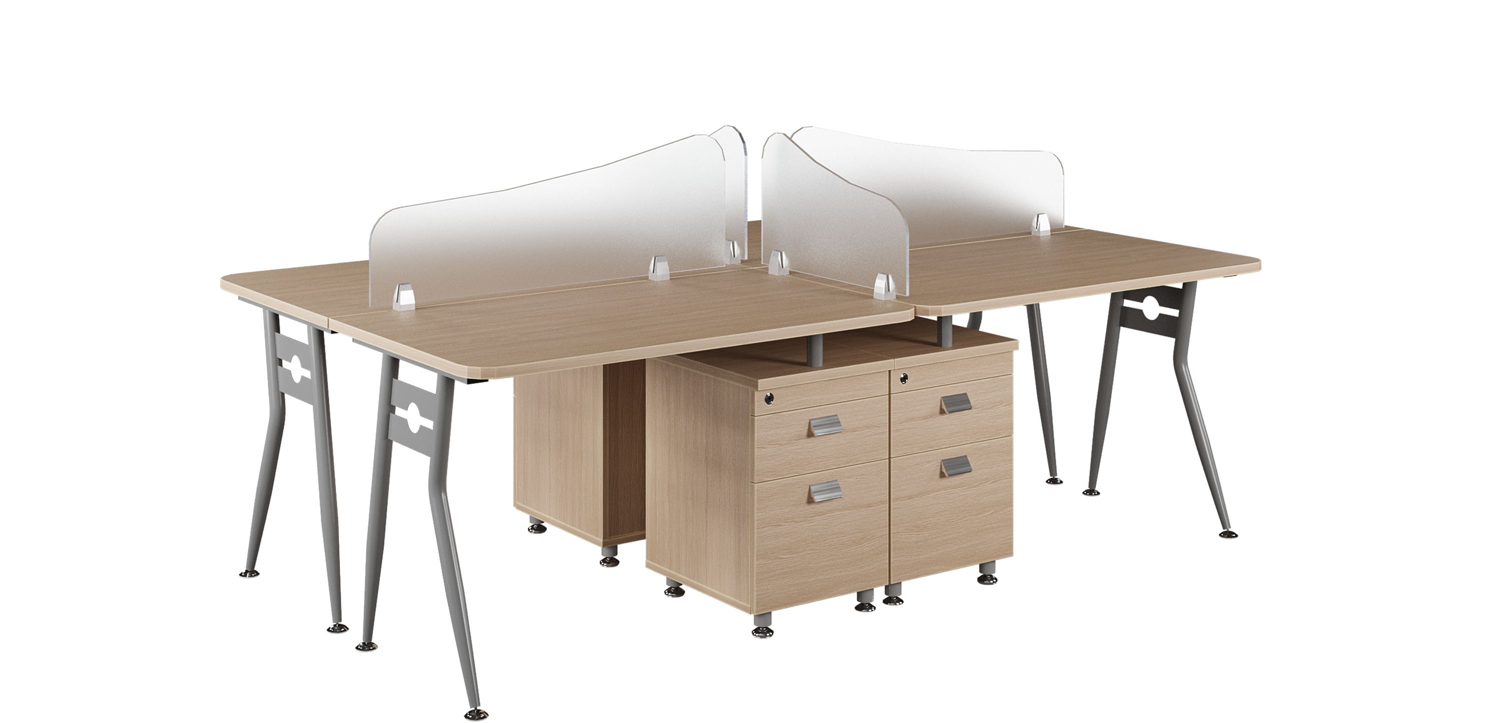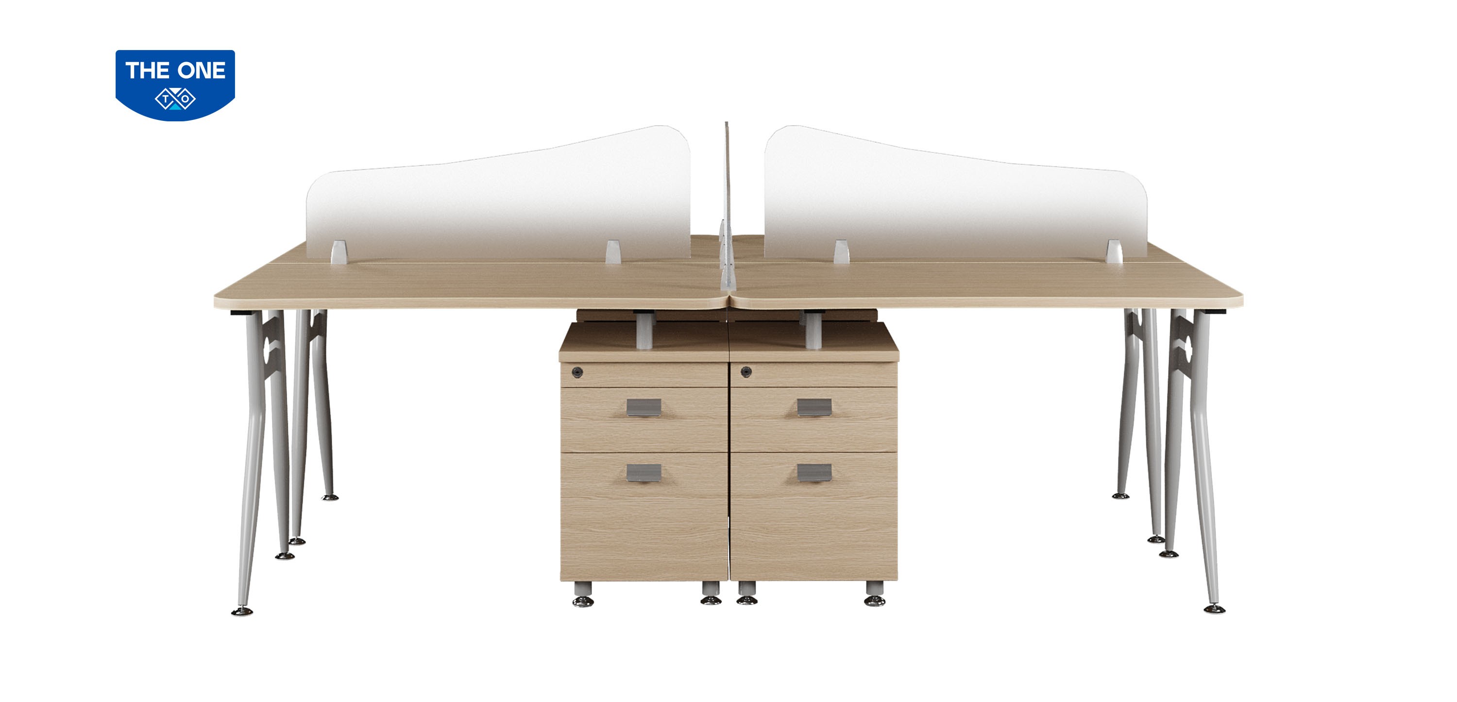 Module làm việc 4 chỗ, dụng chân sắt và có vách ngăn kính.