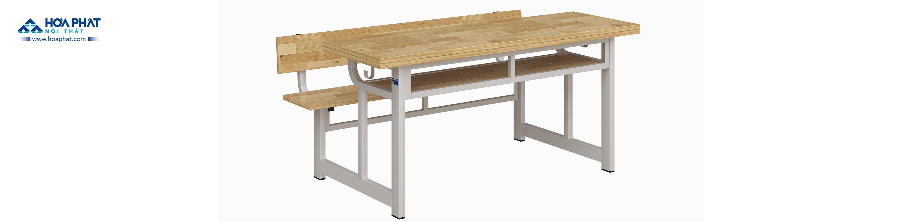 Bàn ghế học sinh bán trú liền ghế khung thép sơn tĩnh điện, mặt gỗ tự nhiên được phủ một lớp sơn trong suốt để bảo vệ bề mặt và giữ được mầu sắc nguyên bản của gỗ.