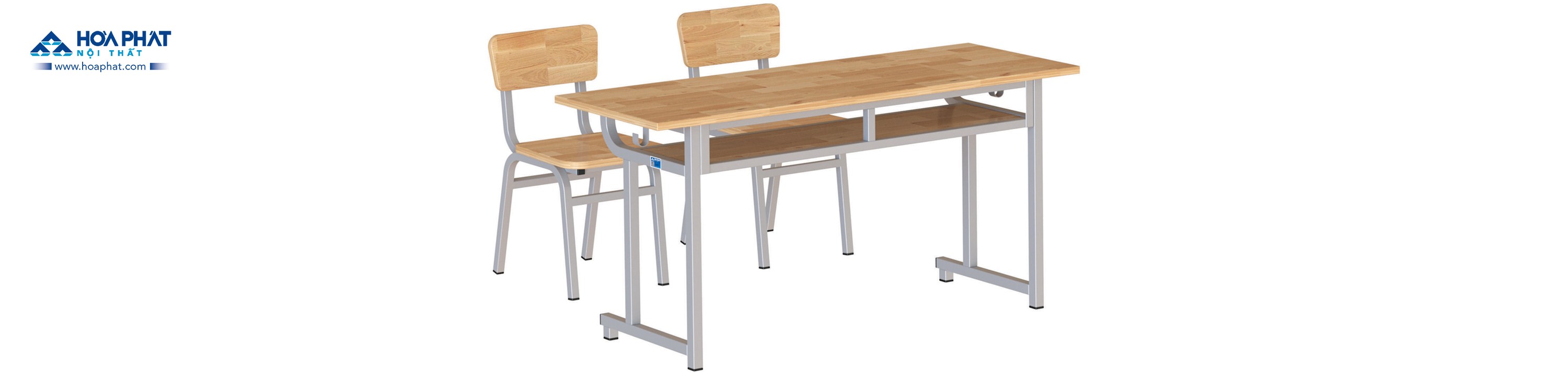 Bàn học sinh đôi rời ghế. Khung thép sơn tĩnh điện, mặt gỗ tự nhiên được phủ một lớp sơn trong suốt để bảo vệ bề mặt và giữ được mầu sắc nguyên bản của gỗ.