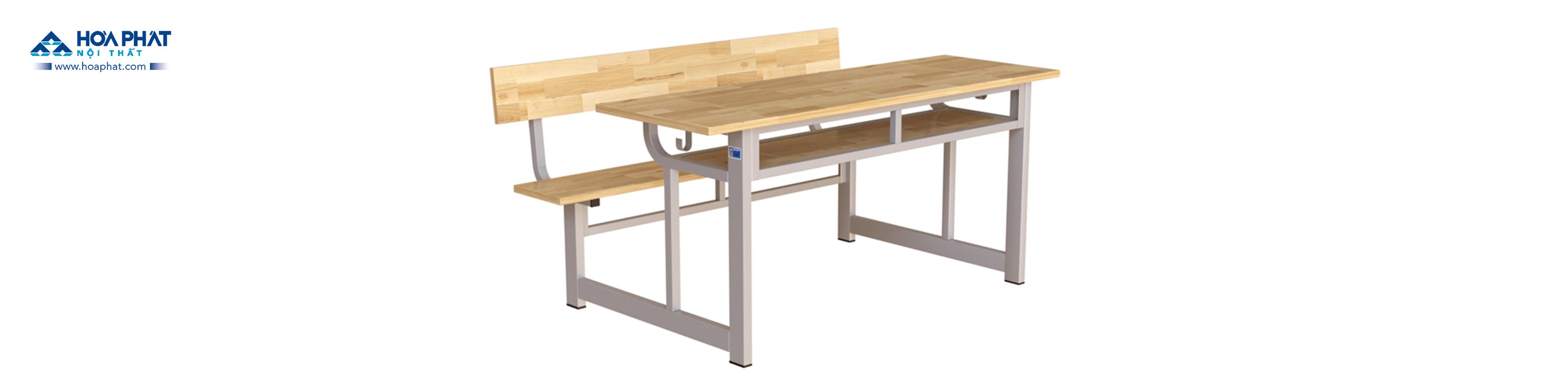 Bàn học sinh đôi liền ghế. Khung thép sơn tĩnh điện, mặt gỗ tự nhiên được phủ một lớp sơn trong suốt để bảo vệ bề mặt và giữ được mầu sắc nguyên bản của gỗ.