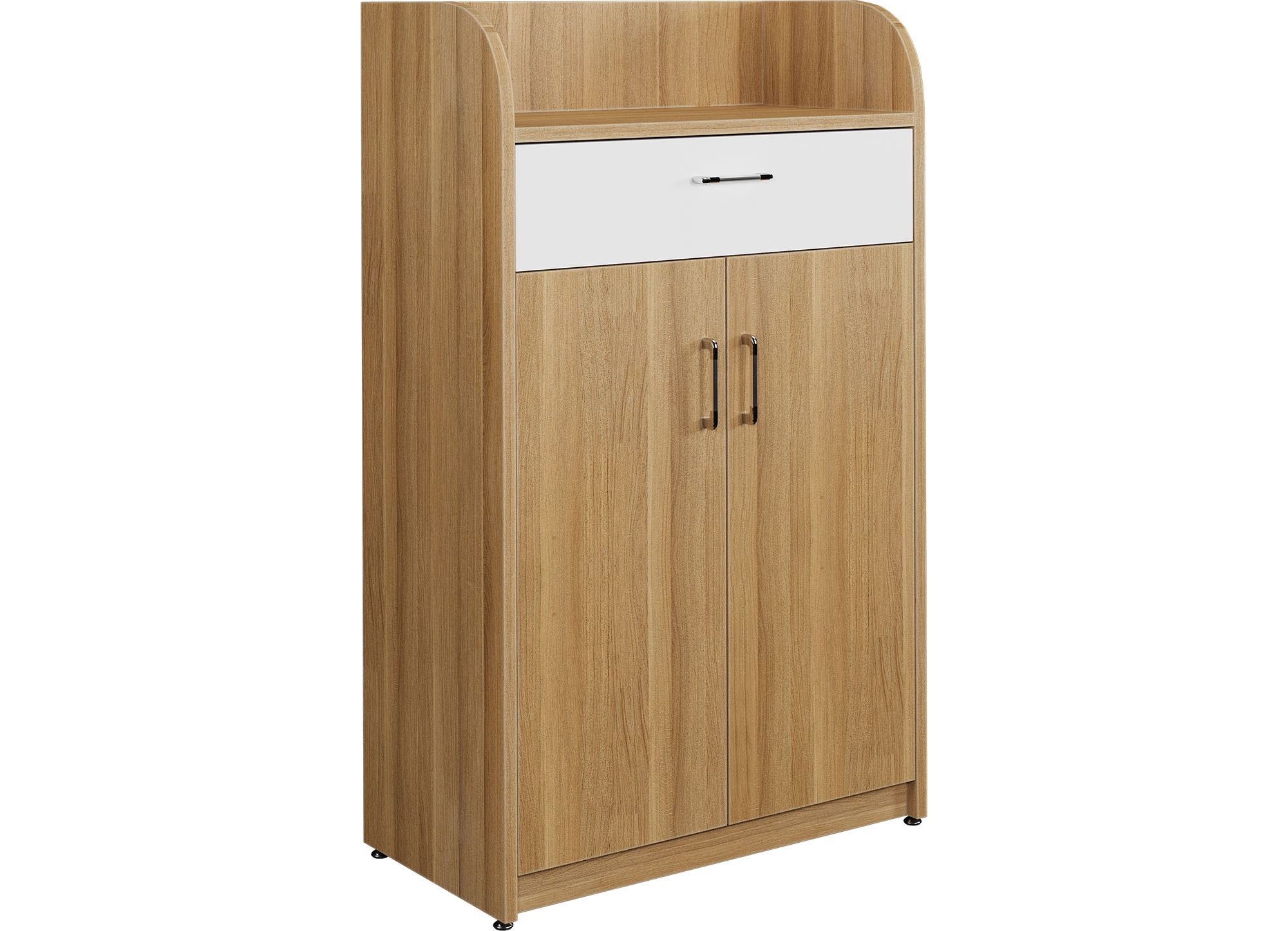 Tủ giầy gỗ công nghiệp chất liệu Melamin toàn bộ. Tủ được thiết kế gồm 4 ngăn để giầy và 1 ngăn kéo để đồ. Phần nóc được thiết kế để đồ trang trí, mũ bảo hiểm.