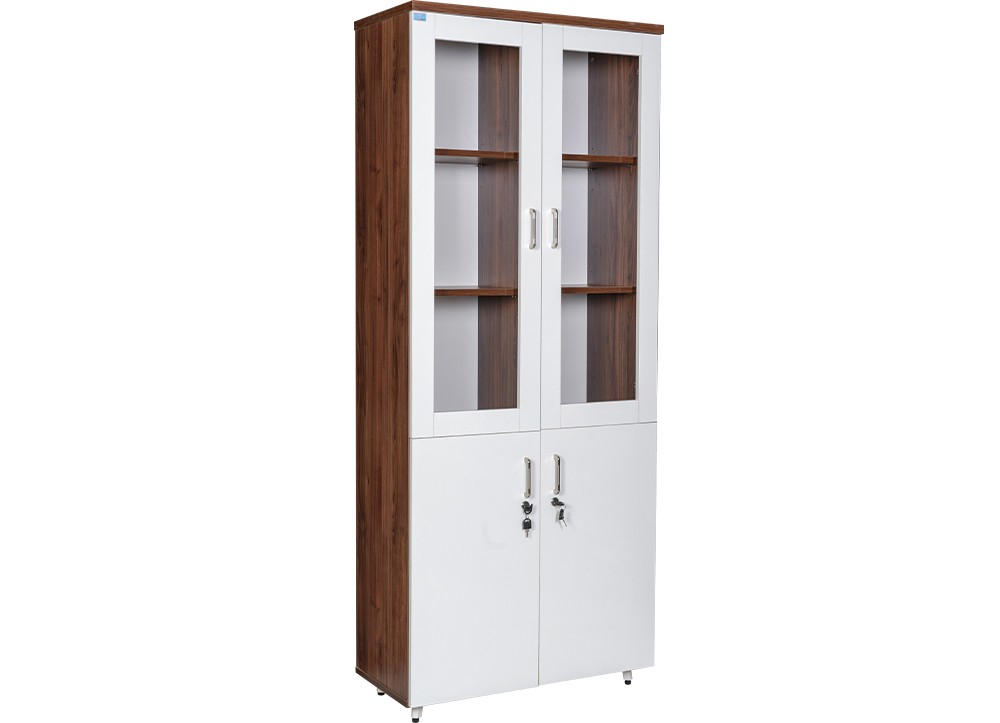 Tủ tài liệu gỗ công nghiệp Melamine cao cấp. Khoang trên tủ sử dụng khung cánh kính và có 2 ngăn di động. Khoang dưới có hai cánh, bên trong có 1 ngăn di động.