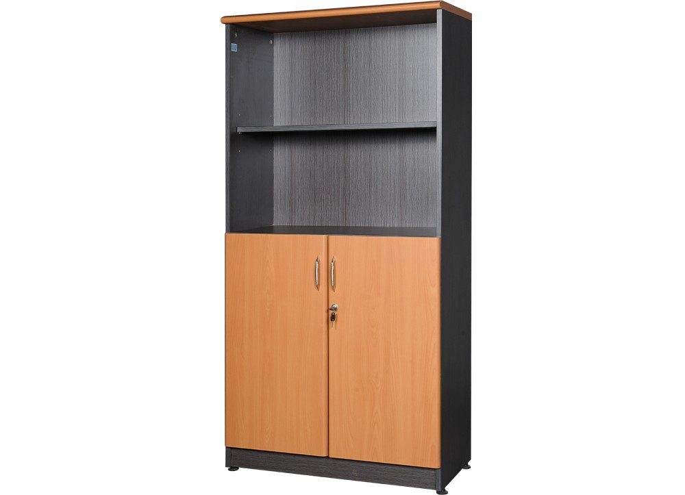 Tủ tài liệu lửng, phía trên là 2 ngăn để đồ, phía dưới 2 cánh gỗ mở.