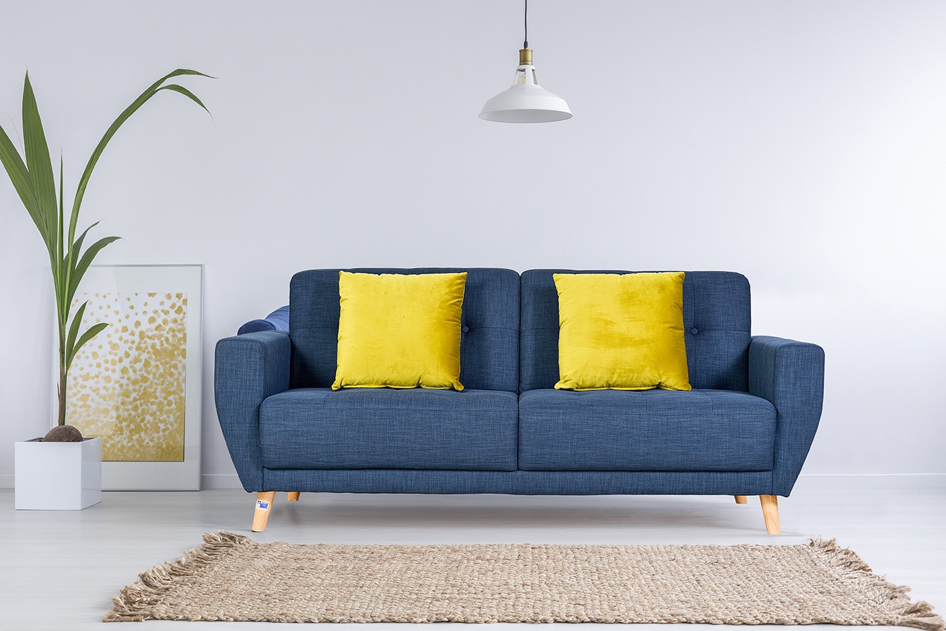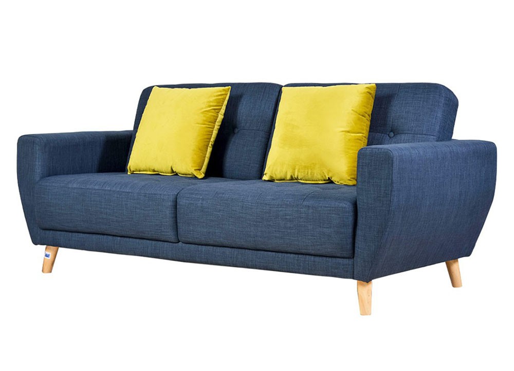 Ghế Sofa nỉ băng 3 thiết kế bắc âu. Đệm tựa có đường may trang trí rút phom, chân gỗ.