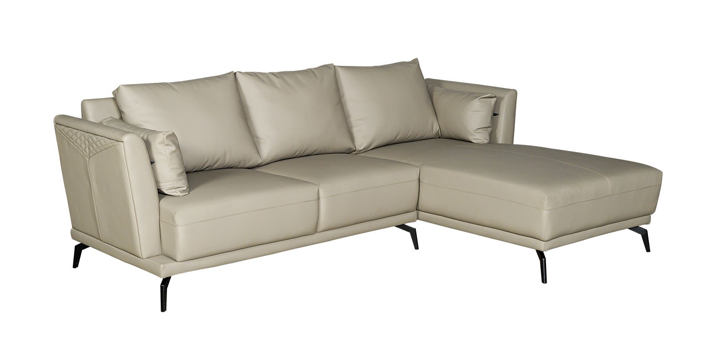 Bộ ghế sofa góc kiểu dáng hiện đại, đệm tựa bọc Da hoặc PVC. Chân thép sơn
