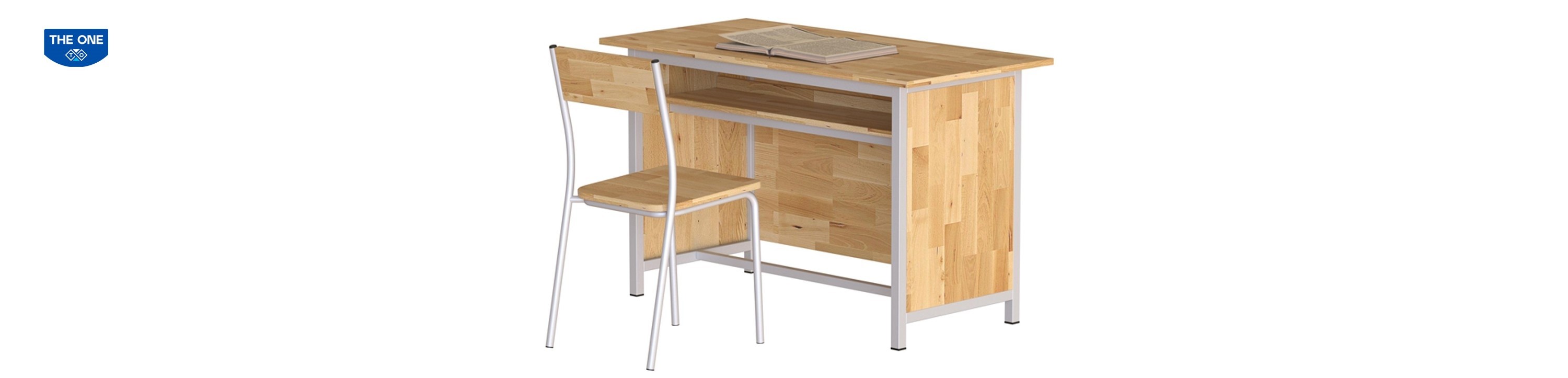 Bàn ghế giáo viên khung thép sơn tĩnh điện, mặt gỗ tự nhiên được phủ một lớp sơn trong suốt để bảo vệ bề mặt và