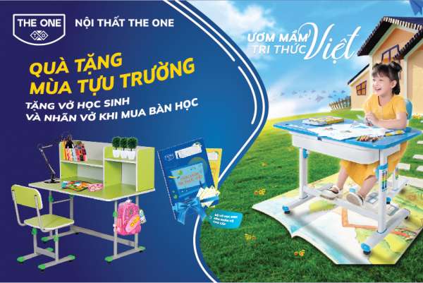 Nhằm chào đón năm học mới đang đến, Nội thất The One giới thiệu chương trình tặng quà khi mua sản phẩm bàn ghế học sinh. Khách hàng khi mua sản phẩm sẽ nhận được quà tặng như sau: *Đối với bàn ghế học sinh (mã BHS09, BHS03, BHS20, ...
