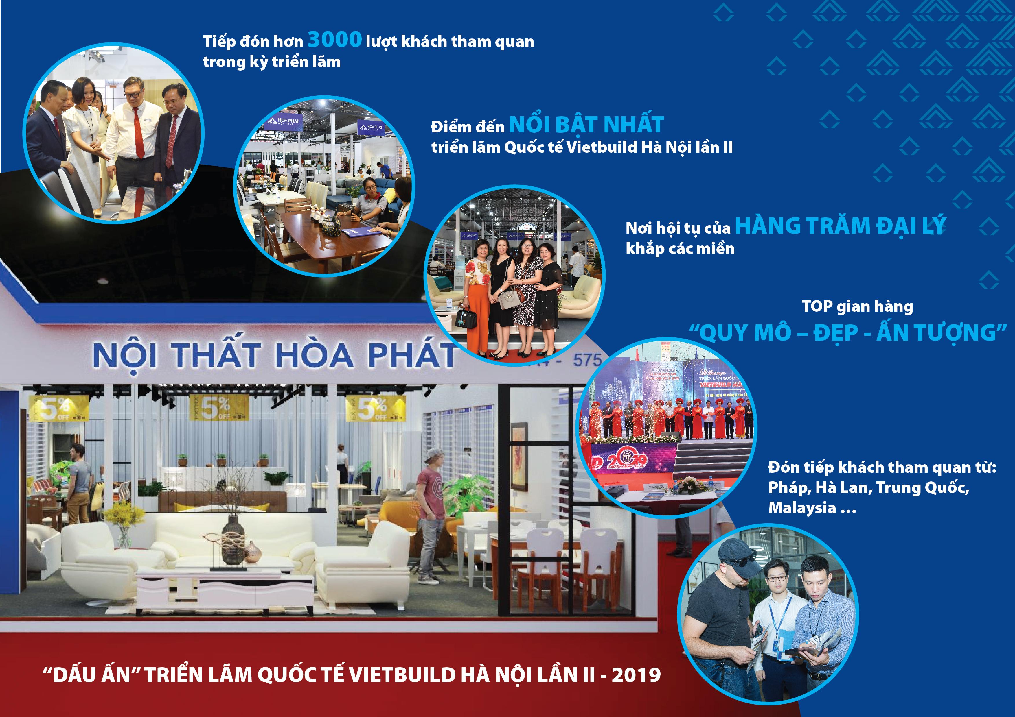 Là loạt hoạt động chuẩn bị kỷ niệm 25 năm thành lập công ty (2020), sau hơn 10 năm bỏ ngỏ – Nội thất Hòa Phát chính thức tạo được tiếng vang lớn trong lòng công chúng sau 2 kỳ triển lãm liên tiếp tại TP.HCM & Hà Nội. Diễn ra vào tháng 9- tháng khởi động cho mùa cao điểm cuối năm, triển lãm quốc tế tại Hà Nội lần II – 2019 thu hút lượng khách tham quan khổng lồ, trong đó gian hàng lớn nhất của Nội thất Hòa Phát là điểm thu hút nổi bật trong kỳ triển lãm lần này.