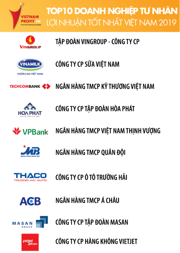 Ngày 25/9/2019, Công ty CP Báo cáo đánh giá Việt Nam (Vietnam Report) phối hợp cùng Báo VietnamNet đã công bố Bảng xếp hạng Profit500 – Top 500 DN lợi nhuận tốt nhất Việt Nam năm 2019. Tập đoàn Hòa Phát vinh dự nằm trong Top 10 DN lợi nhuận tốt nhất Việt Nam năm 2019 và xếp thứ 4 trong số DN tư nhân lợi nhuận tốt nhất Việt Nam.
