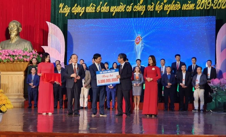 Ngày 26/12/2019, Tập đoàn Hòa Phát đã ủng hộ 5 tỷ đồng cho Chương trình “Chung tay xây dựng nhà ở cho người có công và hộ nghèo tỉnh Hưng Yên năm 2019 – 2020” do Tỉnh ủy, HĐND, UBND, Ủy ban MTTQ Việt Nam tỉnh tổ chức.
