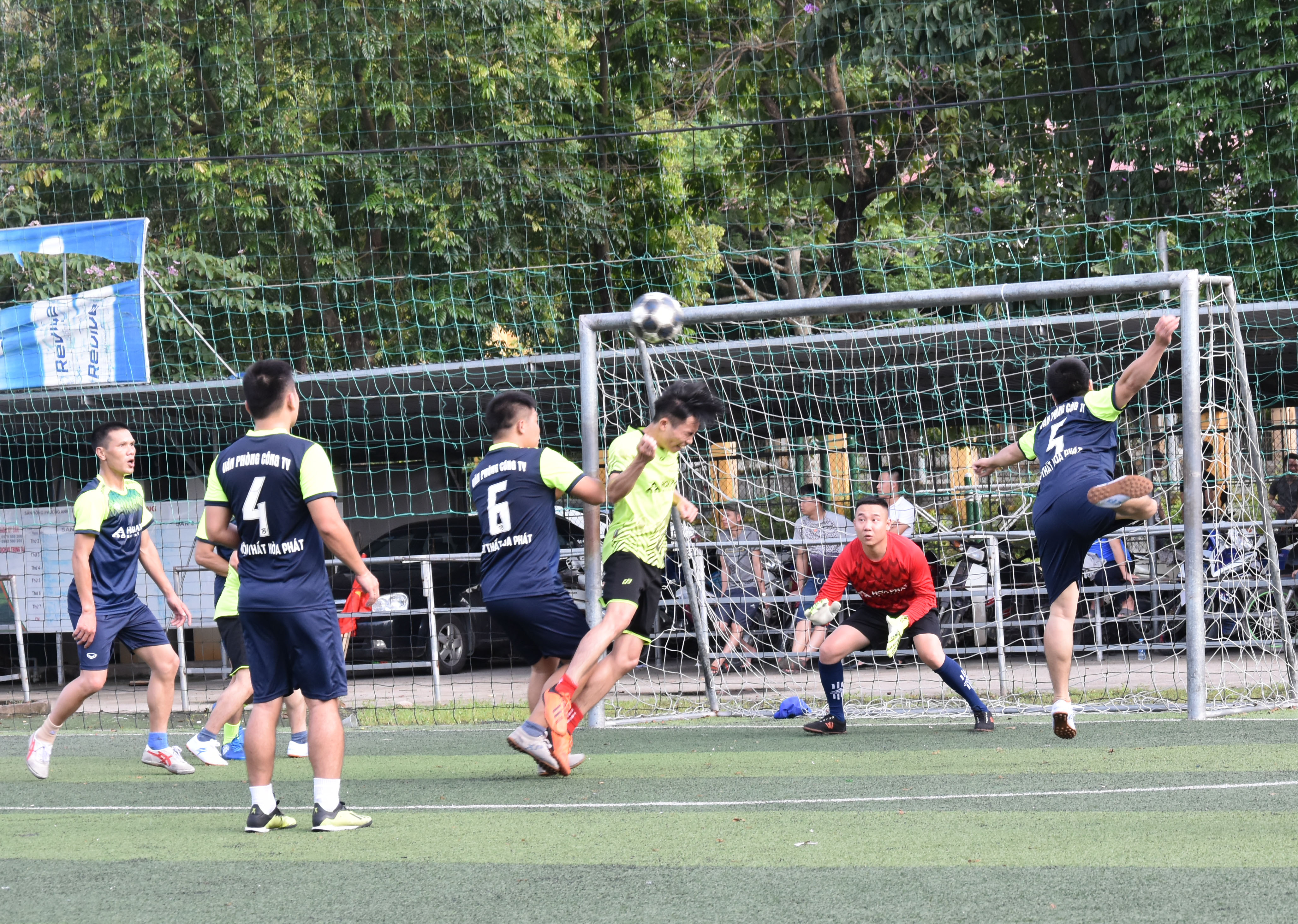 (Pha đánh đầu tấn công khung thành Văn phòng công ty của các cầu thủ Gỗ Tân Quang)