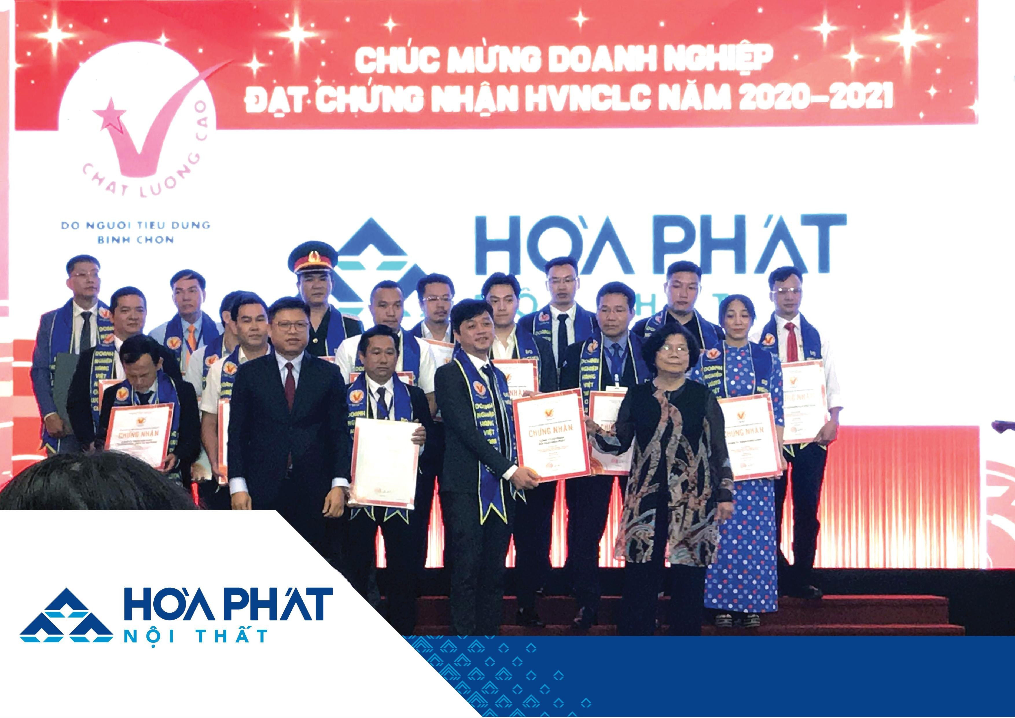 Trong đó, Công ty CP Nội thất Hòa Phát tự hào là 1 trong 2 doanh nghiệp duy nhất thuộc ngành Nội thất Gỗ được NTD yêu thích bình chọn danh hiệu HVNCLC 2020 -2021. Việc liên tiếp nhận được danh hiệu HVNCLC trong nhiều năm liền, đã chứng minh được năng lực sản xuất vững mạnh, chất lượng sản phẩm cùng niềm tin thương hiệu Nội thất Hòa Phát của đông đảo người tiêu dùng.