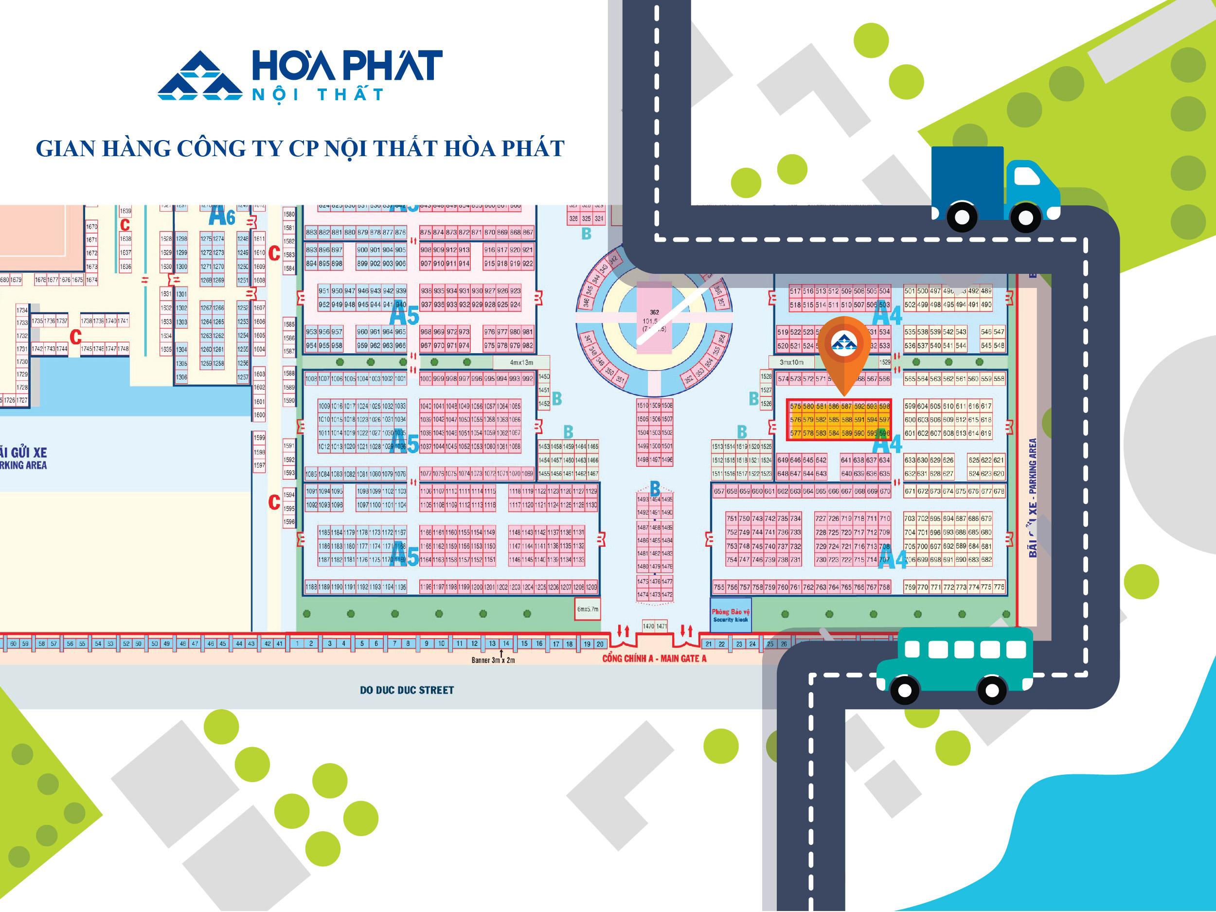(Vị trí gian hàng Nội thất Hòa Phát: 575 – 598 nhà A4)