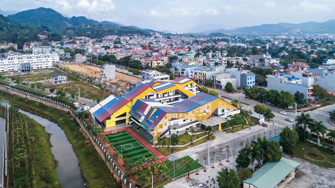 Được lấy cảm hứng từ trò chơi “Rồng rắn lên mây” và hoa văn trên chiếc khăn đội đầu của người con gái xứ Mường, trường mầm non và tiểu học Dạ Hợp được thiết kế với không gian đa dạng và vô cùng thú vị. Các dãy phòng được kết nối bởi hành lang có mái che, các phòng học đều nhìn ra dãy núi bao quanh để trẻ tự do khám phá, thỏa sức sáng tạo và tăng thêm niềm vui đến trường.