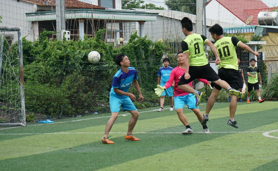 (Pha đánh đầu của chân sút Két sắt vào khung thành đội Văn phòng CN)