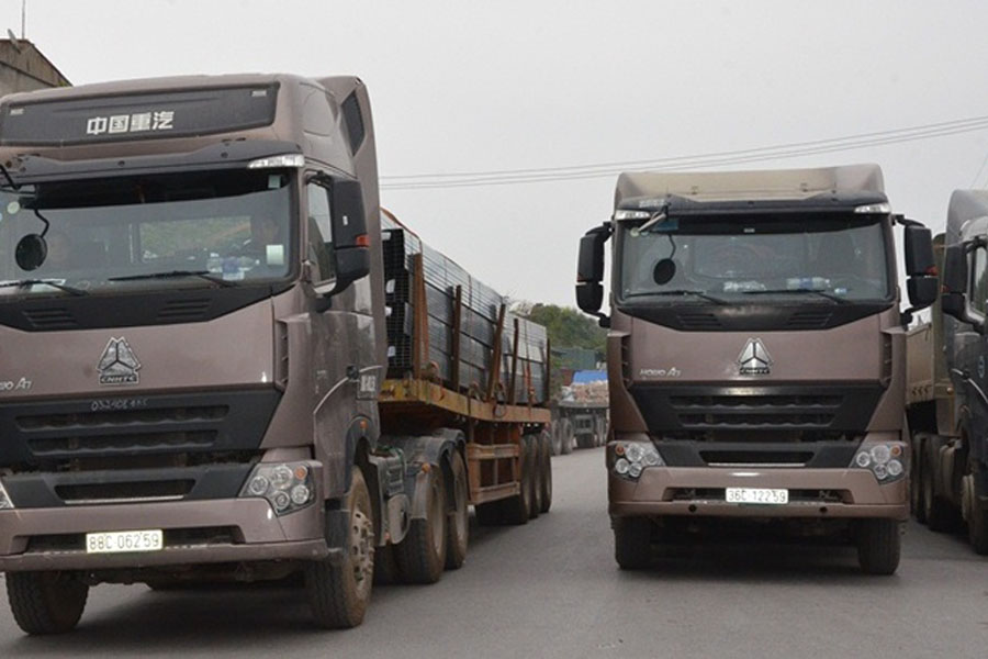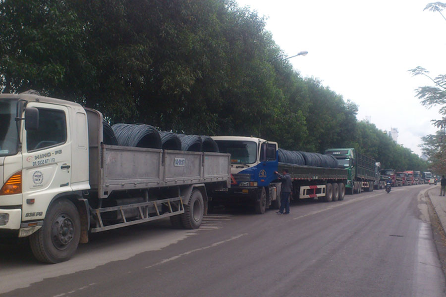Hàng chục xe tải cỡ lớn đã tập trung về các nhà máy thép của Hòa Phát để mở hàng đầu năm