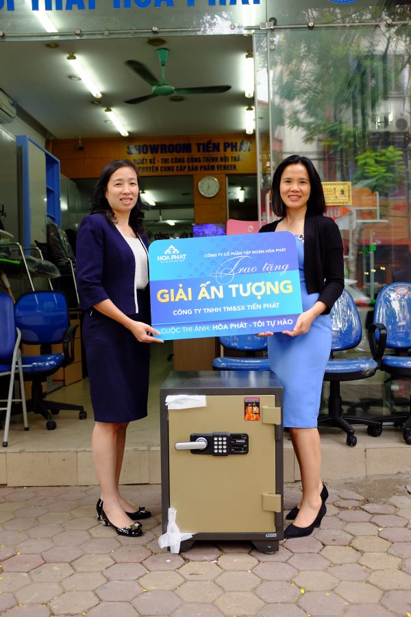 Tại khu vực phía bắc, chị Nguyễn Thị Thuận – Phó Giám đốc Công ty Cổ phần Nội thất Hòa Phát cũng đã trực tiếp trao giải cho các đại lý đạt Giải ấn tượng. Giải thưởng cho hạng mục này là một chiếc két sắt của Nội thất Hòa Phát.