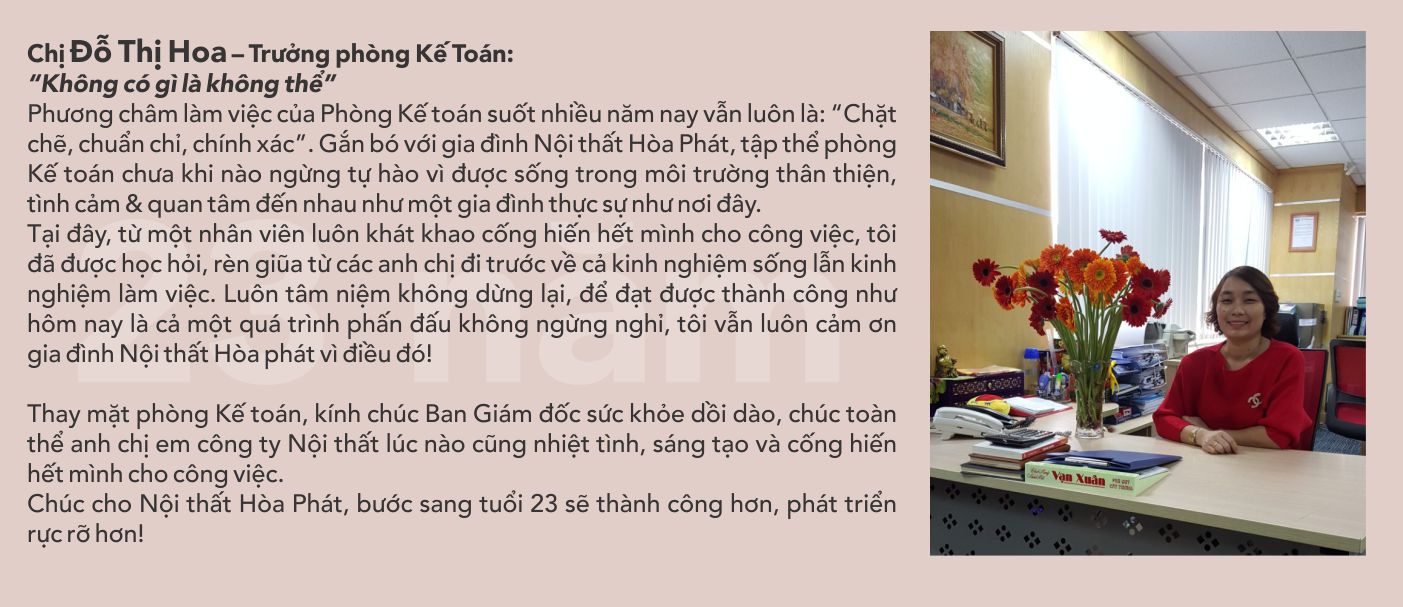 Hãy cùng lắng nghe các CBNV của Nội thất Hòa Phát chia sẻ những cảm xúc nhân dịp kỷ niệm sinh nhật 23 năm Nội thất Hòa Phát.