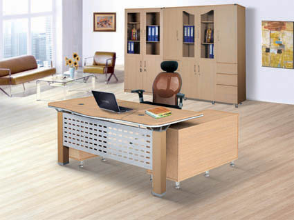 Bàn lãnh đạo Royal mang phong cách hiện đại, kết cấu độc đáo với phần mặt bàn được ghép gỗ Melamine vân sần và tấm MDF sơn ánh bạc. Hơn nữa, điểm nhấn trên mặt bàn với tấm da trang trí mang lại sự sang trọng cho sản phẩm. Đặc biệt sự sáng tạo trong thiết kế các chi tiết chân bàn, yếm bàn, hộc, tủ phụ liên kết với mặt bàn bằng bích đỡ, trụ mạ góp phần tạo nên tổng thể bề thế và hiện đại.
