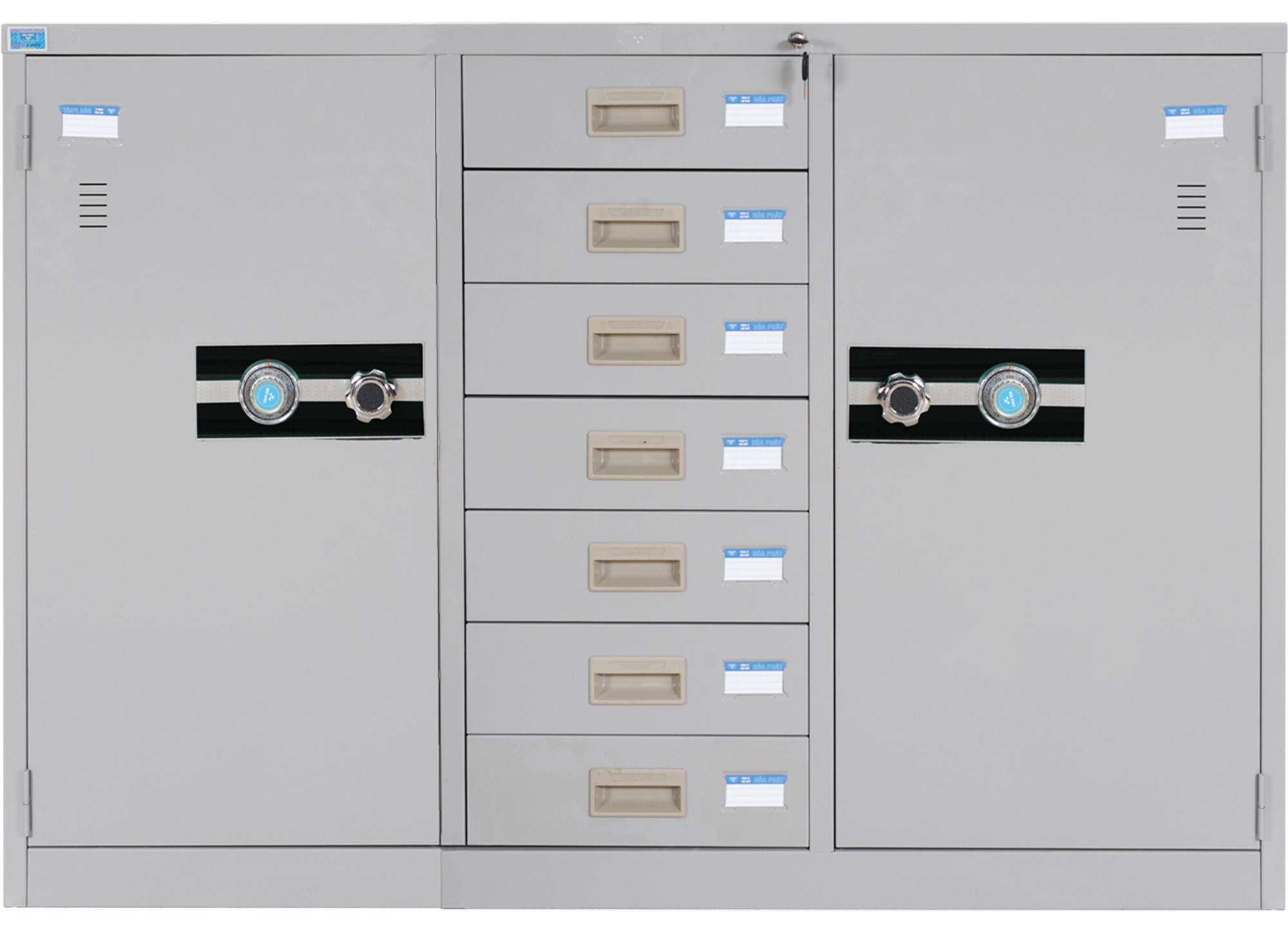 Tủ sắt sơn tĩnh điện 3 khoang: hai khoang bên ngoài mỗi khoang có 1 khóa mã, 2 đợt di động.