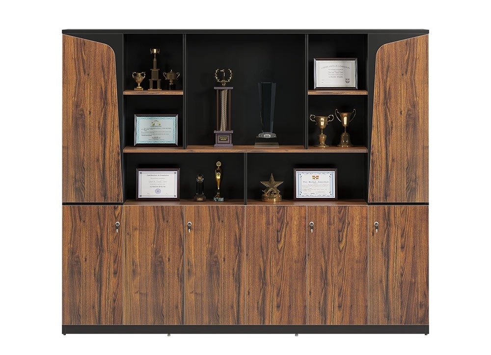 Tủ lãnh đạo V6 chất liệu gỗ công nghiệp màu M6 và M26, cánh tủ cao có ốp trang trí