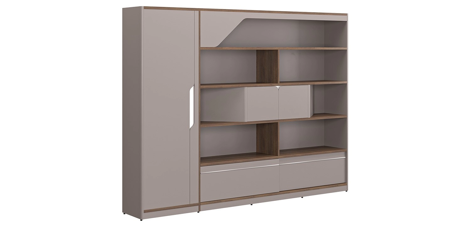 Tủ lãnh đạo LUXURY SUPREME S5 chất liệu melamin kết hợp sơn, thiết kế gồm 1 khoang treo áo và 5 khoang chia trang trí để tài liệu dercor. Khoang dưới cùng thiết kế cánh lùa, khoang giữa có cánh mở, đợt chéo tạo điểm nhấn bằng tay nắm vát.