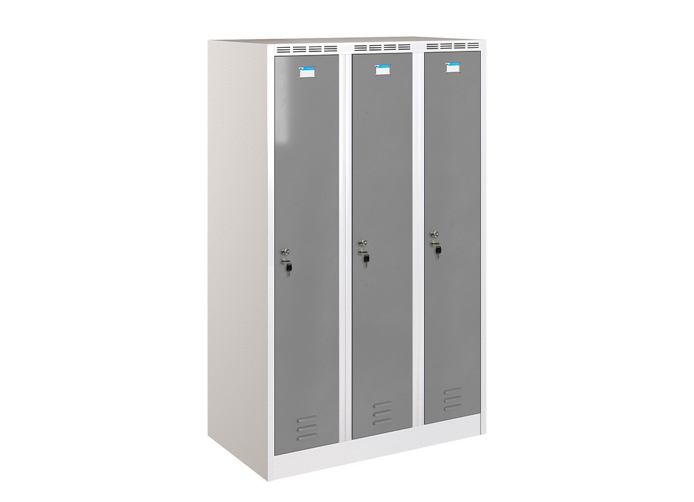 Tủ sắt sơn tĩnh điện 3 khoang cánh mở, bên trong mỗi khoang có 2 đợt cố định và 1 suốt treo quần áo.
