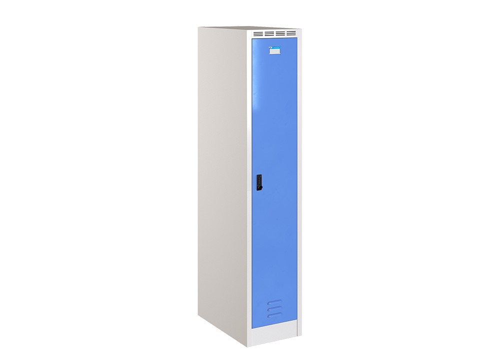 Tủ sắt sơn tĩnh điện 1 khoang cánh mở, bên trong có 2 đợt cố định và 1 suốt treo quần áo.