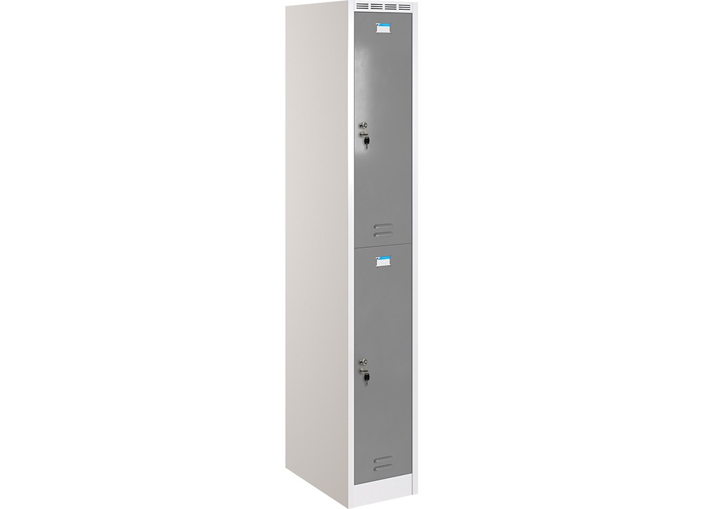 Tủ sắt sơn tĩnh điện chia 2 khoang cánh mở trên dưới, bên trong mỗi khoang có 1 đợt cố định và 1 suốt treo quần áo.