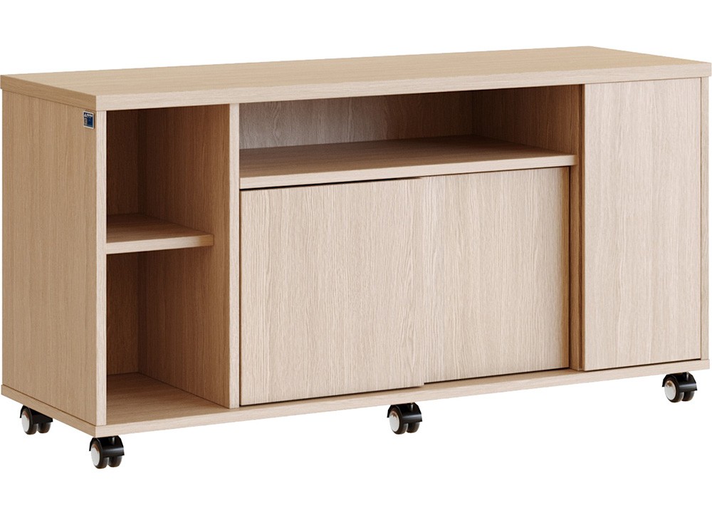Tủ phụ di động gỗ công nghiệp, có khoang giữa sử dụng 2 cánh lùa và khoang ngoài có 1 cánh mở.