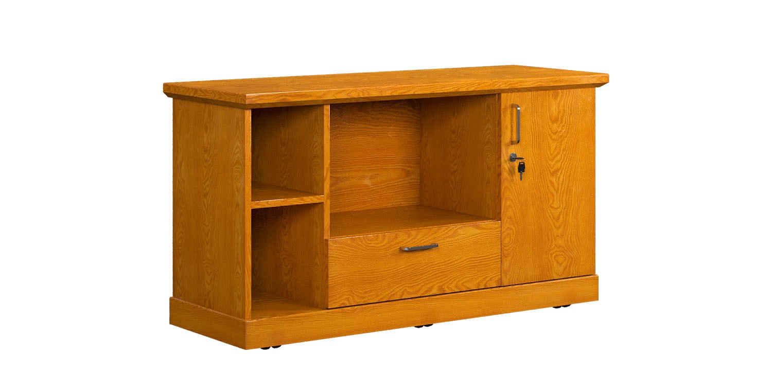 Tủ có cánh mở, ngăn kéo và khoang để tài liệu.