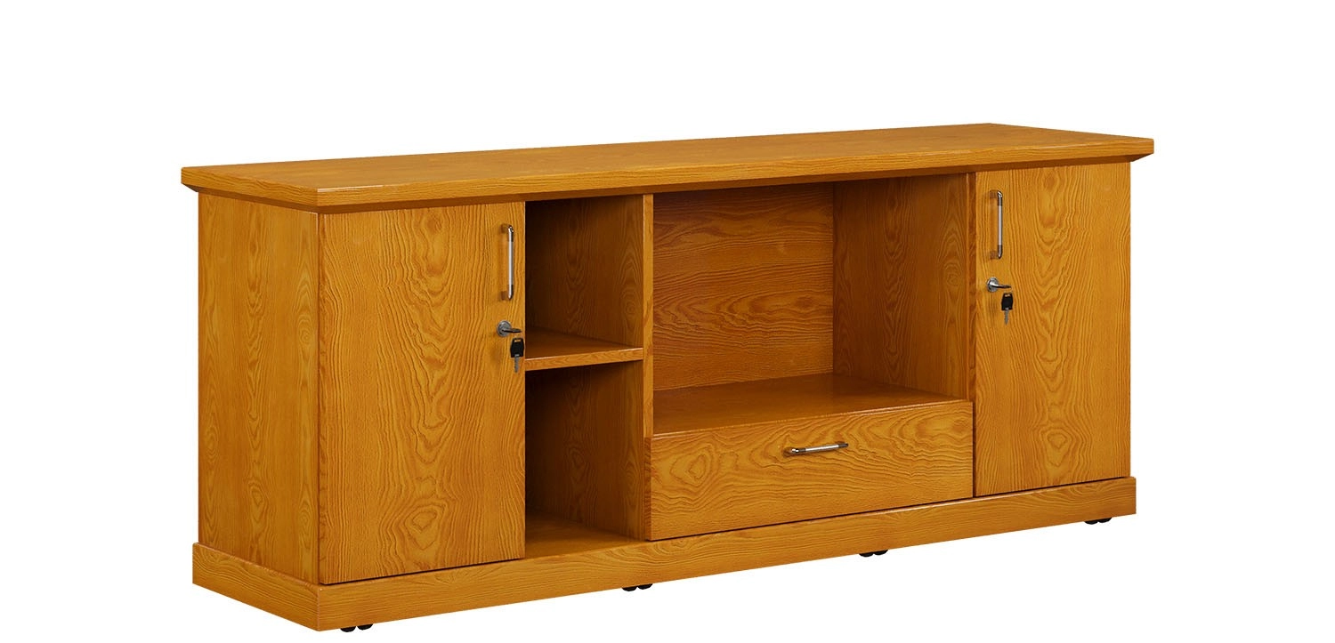 Tủ có 2 cánh mở, ngăn kéo và khoang để tài liệu.