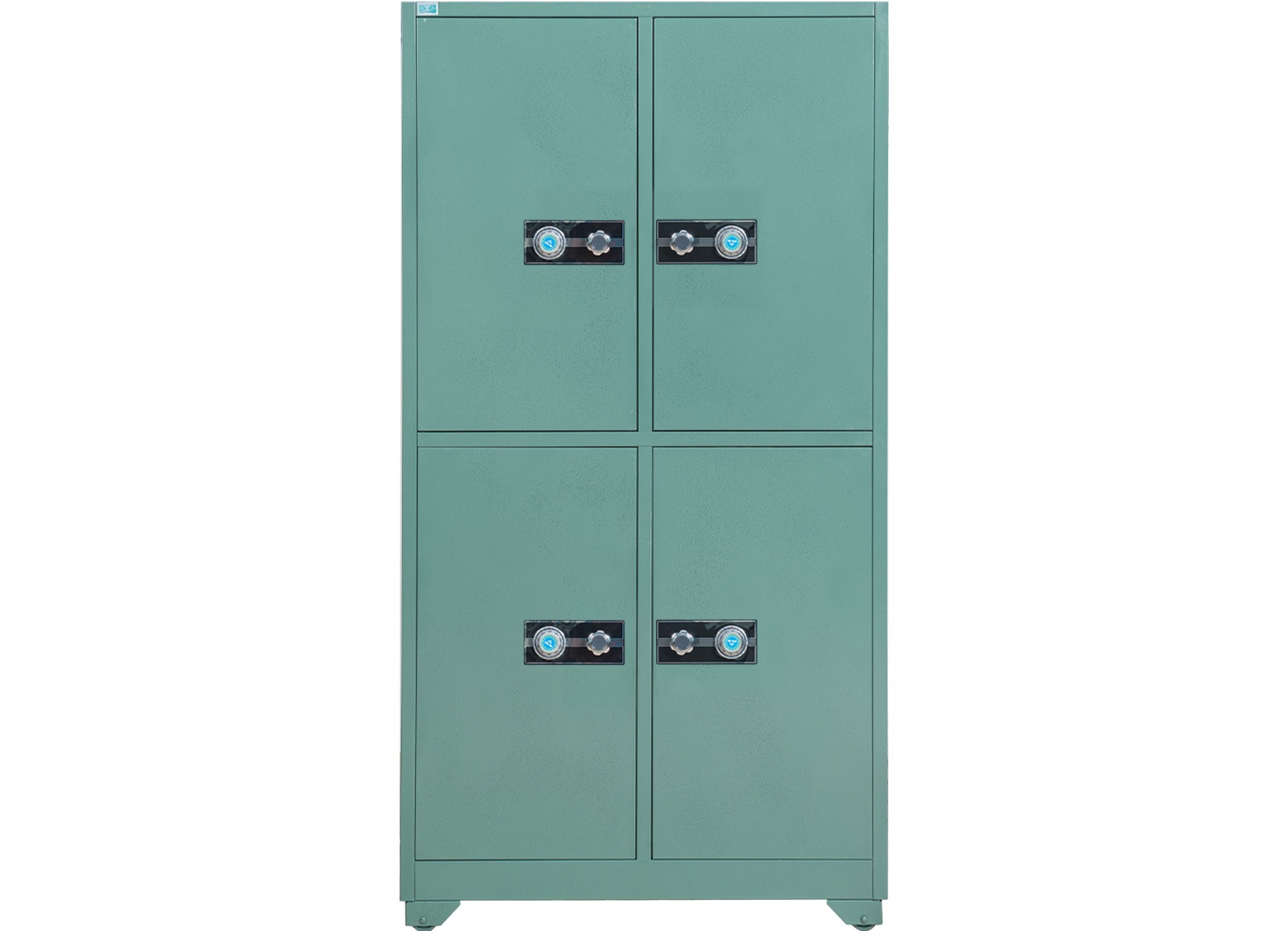 Tủ sắt thép dày gồm 4 khoang, trong mỗi khoang có 1 đợt di động.