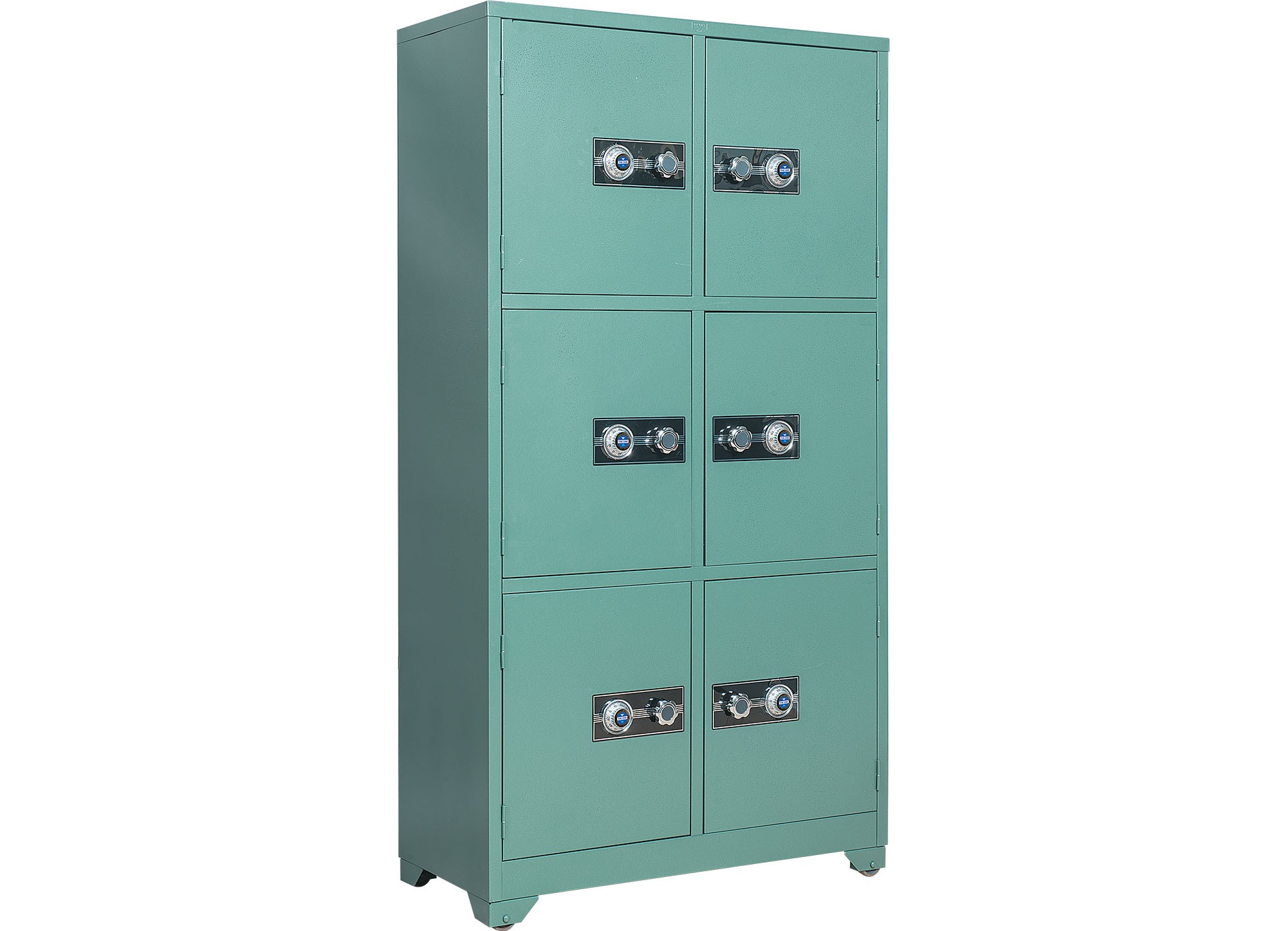 Tủ sắt an toàn thép dày gồm 6 khoang. Cánh tủ sử dụng khóa mã riêng biệt.