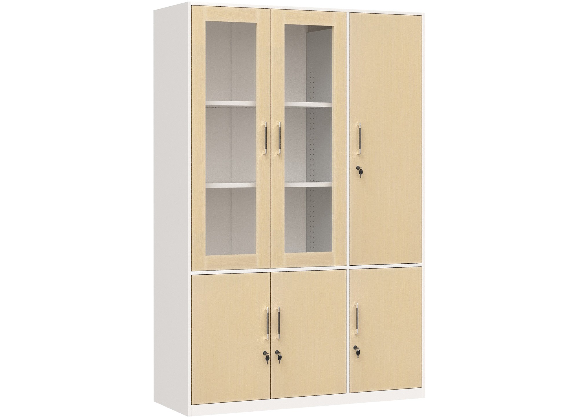 Tủ tài liệu khung thép sơn tĩnh điện màu trắng S26, cánh gỗ Melamine màu M14.