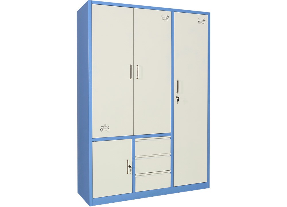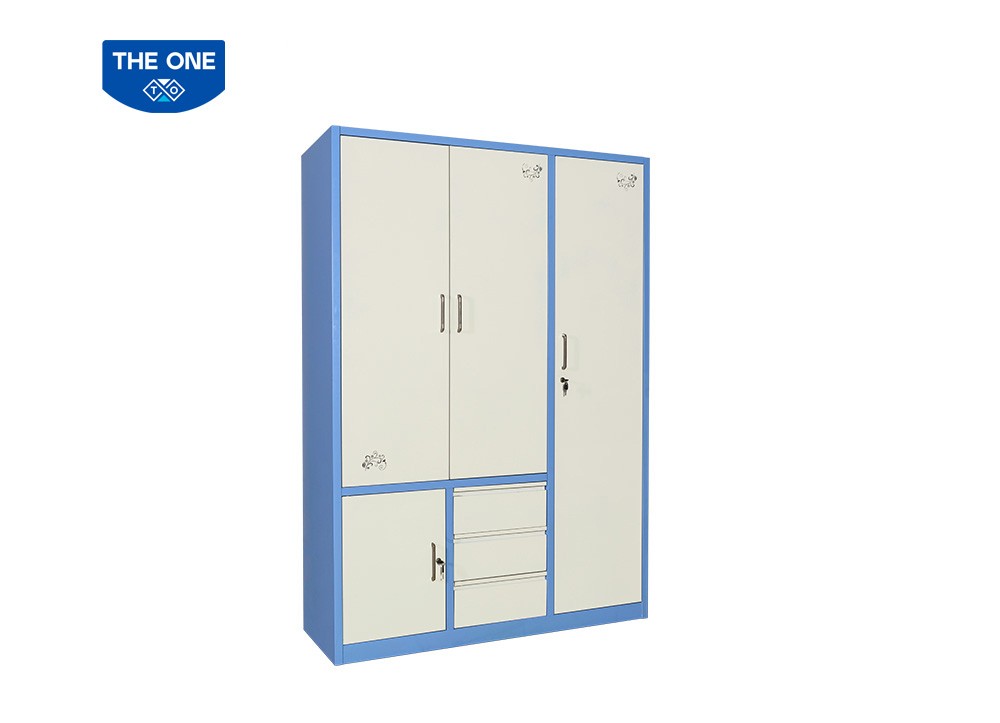 Tủ gia đình khung thép sơn tĩnh điện gồm 3 buồng, 4 cánh, 3 ngăn kéo.
