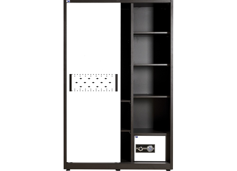 Tủ gồm 2 khoang trong đó khoang trái có 2 đợt di động và 1 suốt áo, khoang phải có 3 đợt di động và 1 ngăn kéo được bảo mật bằng khóa mã chuyên dùng cho két.