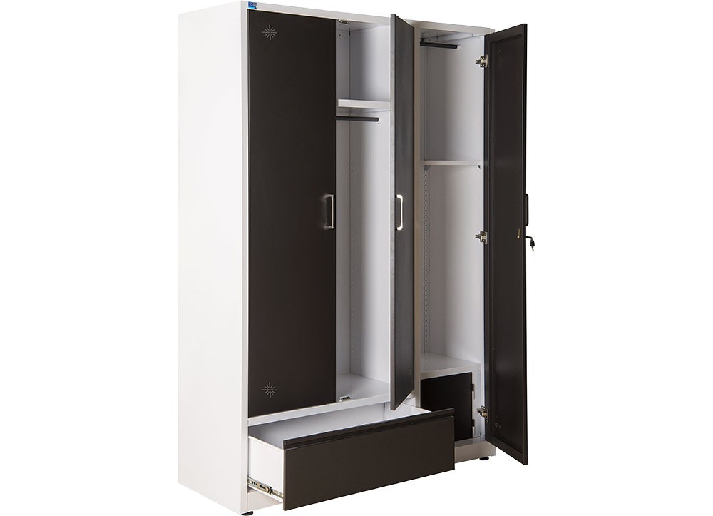 Khoang bên trái gồm 1 đợt cố định và 1 suốt treo quần áo, khoang bên phải gồm 1 đợt di động, 1 ngăn phụ có khóa và 1 suốt treo quần áo.