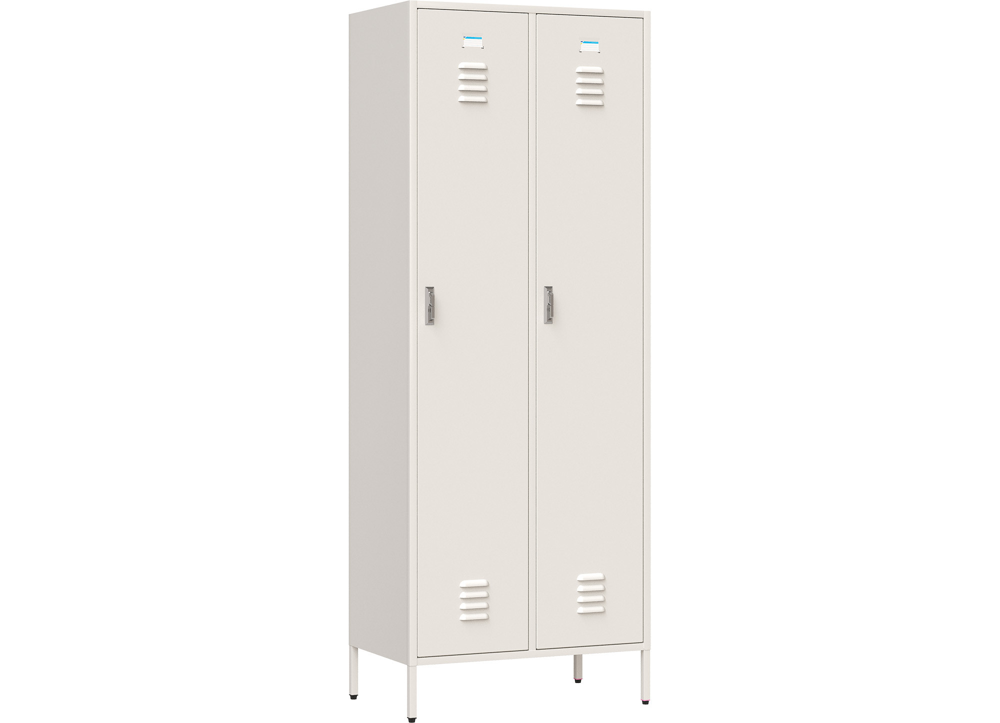 Tủ sắt sơn tĩnh điện màu trắng ngà.Tủ có 2 khoang cánh mở, bên trong mỗi khoang có 1 đợt cố định và 3 móc treo áo đơn, 1 móc treo áo đôi.Cánh sử dụng tay nắm cao cấp kèm hệ thống thanh khóa tự sập khi đóng