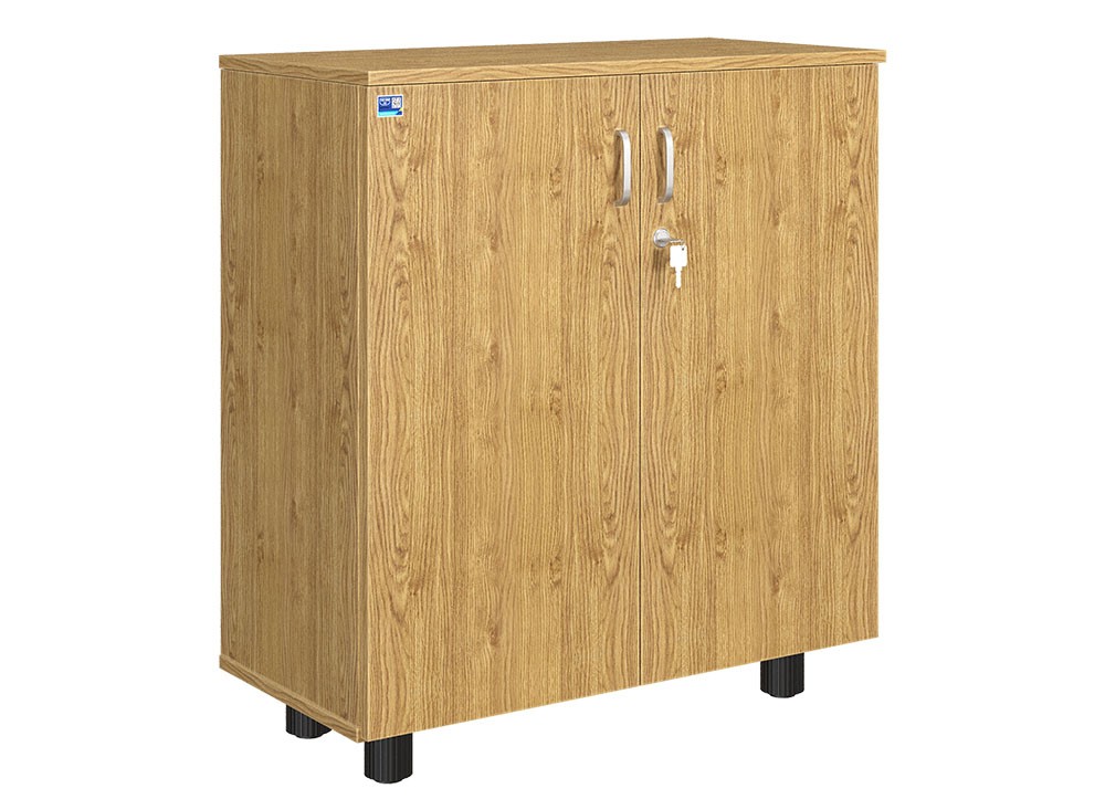 Tủ tài liệu thấp 2 cánh gỗ mở, có hai khoang để file, chất liệu melamine, nóc tủ 17mm, thành tủ 15mm.