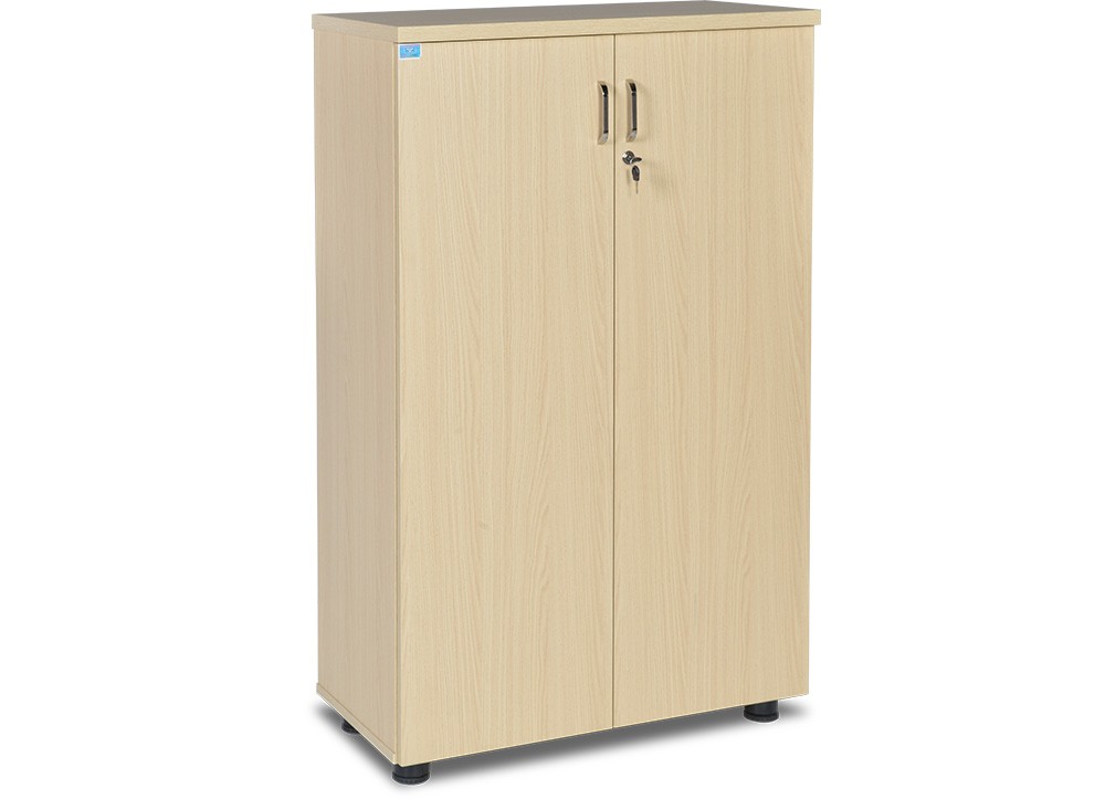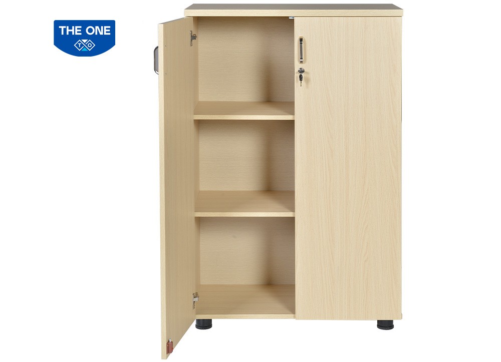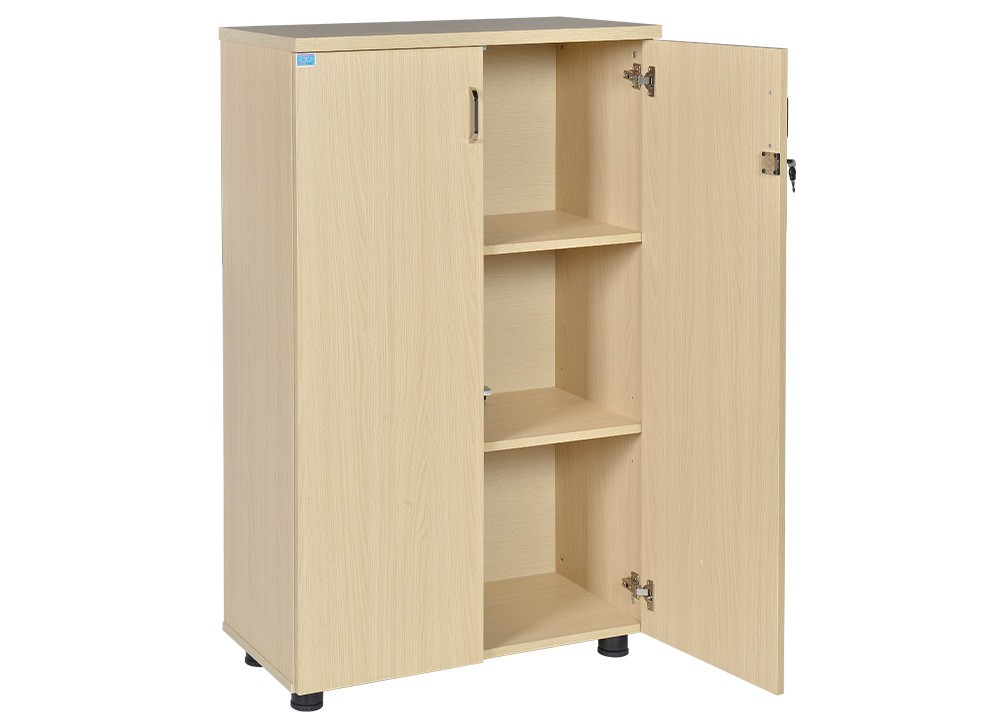 Tủ tài liệu 2 cánh gỗ mở, có 3 khoang để file và sử dụng chất liệu Melamine.