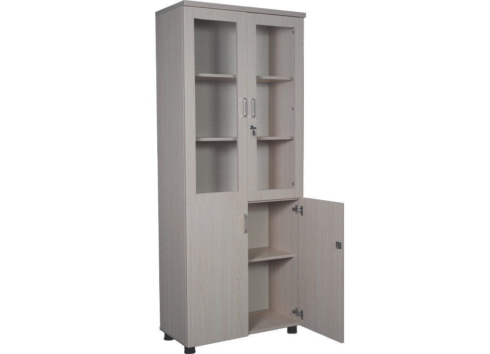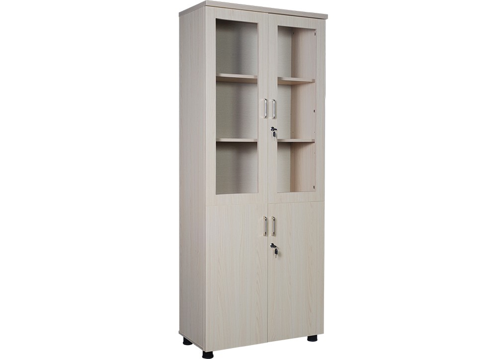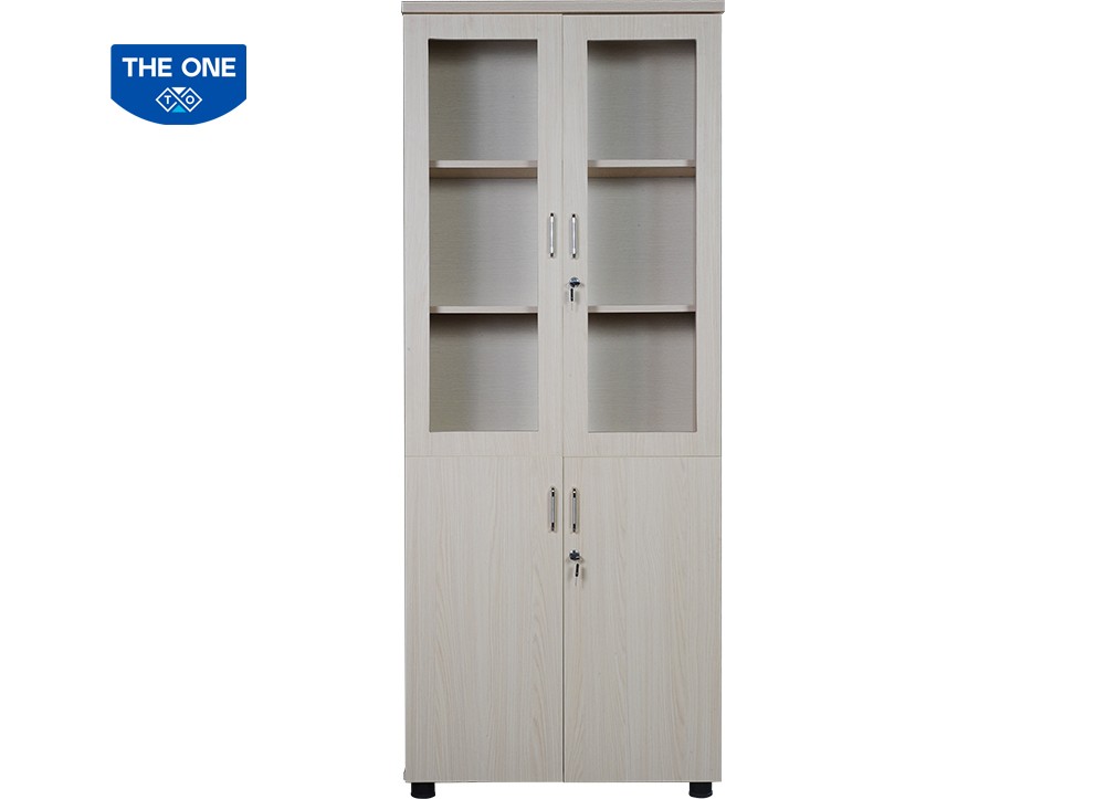 Tủ tài liệu 2 buồng gỗ Melamine, phía trên là 2 khoang cánh kính để tài liệu, phía dưới 2 cánh mở.