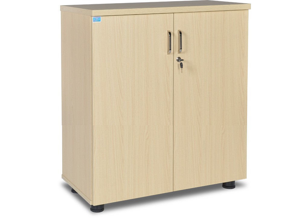 Tủ tài liệu thấp 2 cánh gỗ mở, có hai khoang để file, chất liệu Melamine.