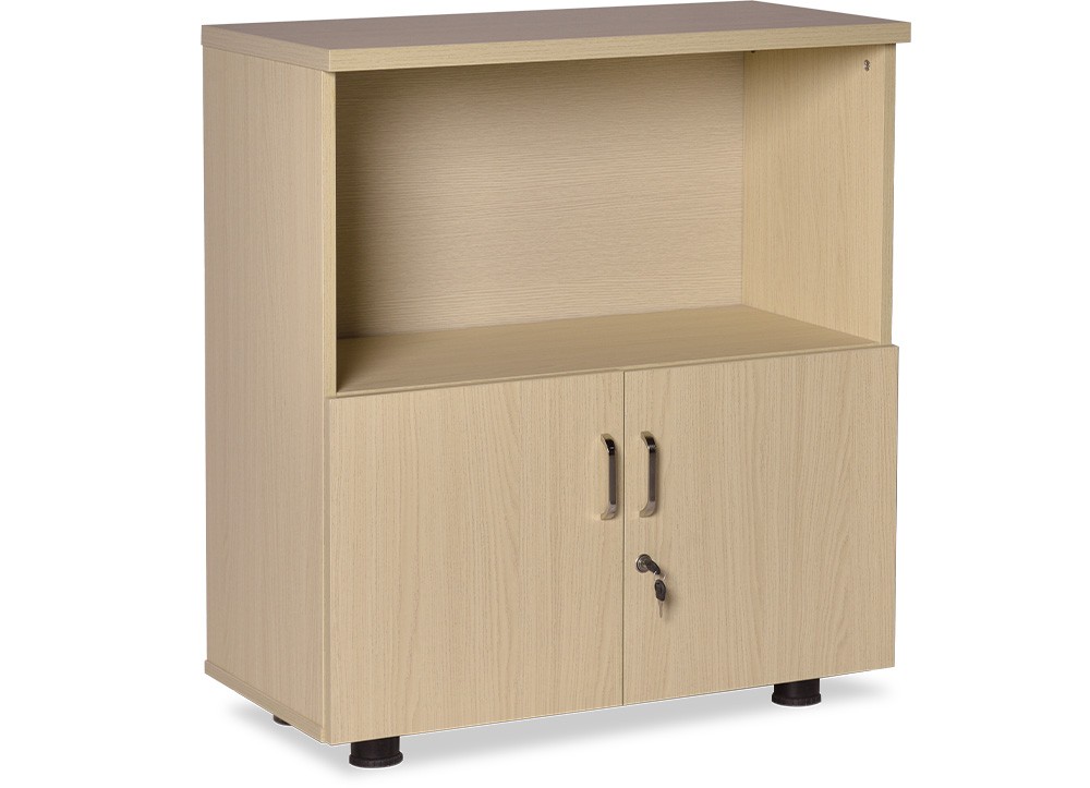 Tủ tài liệu thấp có 2 khoang để file, khoang dưới có cánh mở, chất liệu Melamine.