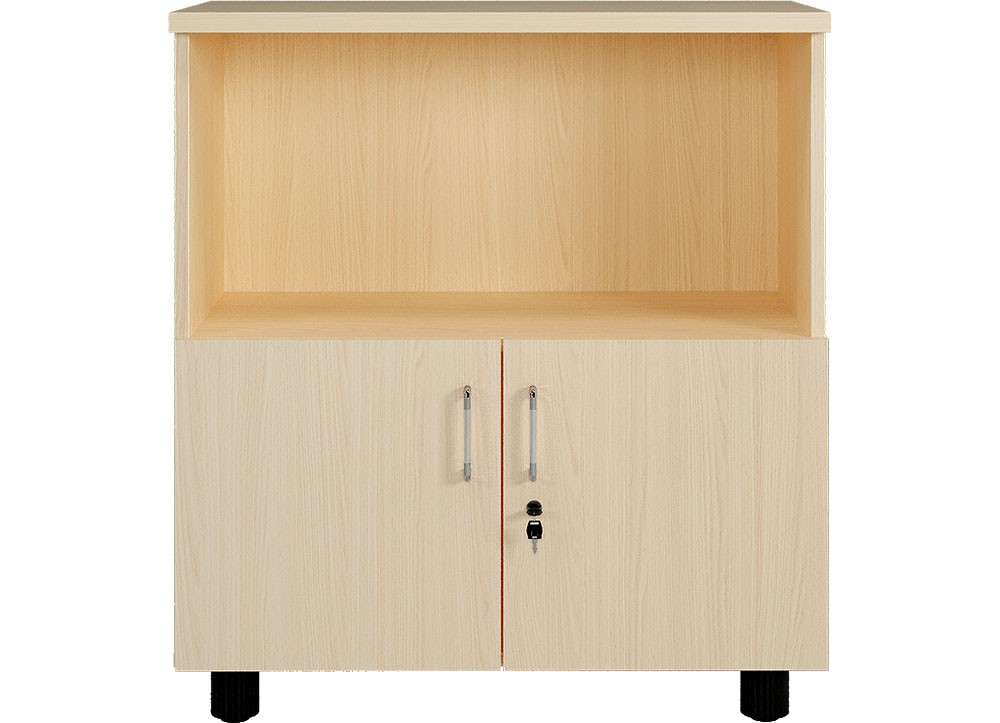 Tủ tài liệu thấp có 2 khoang để file, khoang dưới có cánh mở, chất liệu Melamine.