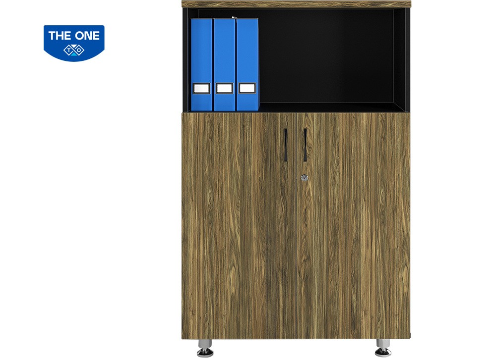 Tủ tài liệu gỗ Melamine có 3 khoang để file, khoang dưới có cánh mở, bên trong có 1 đợt cố định.