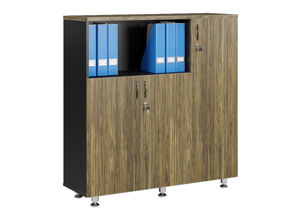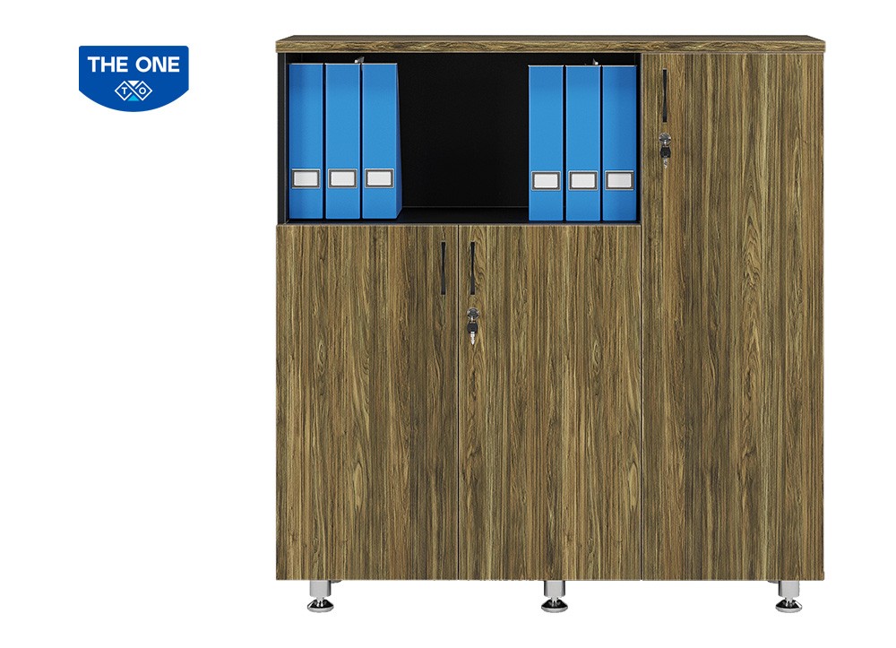 Tủ tài liệu gỗ Melamine thấp 3 cánh, bên trái có 1 khoang trống không cánh